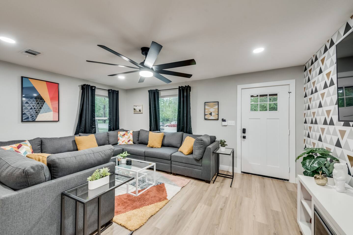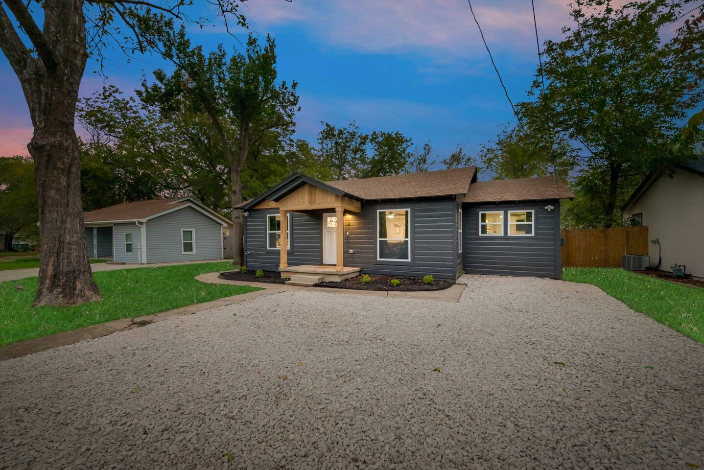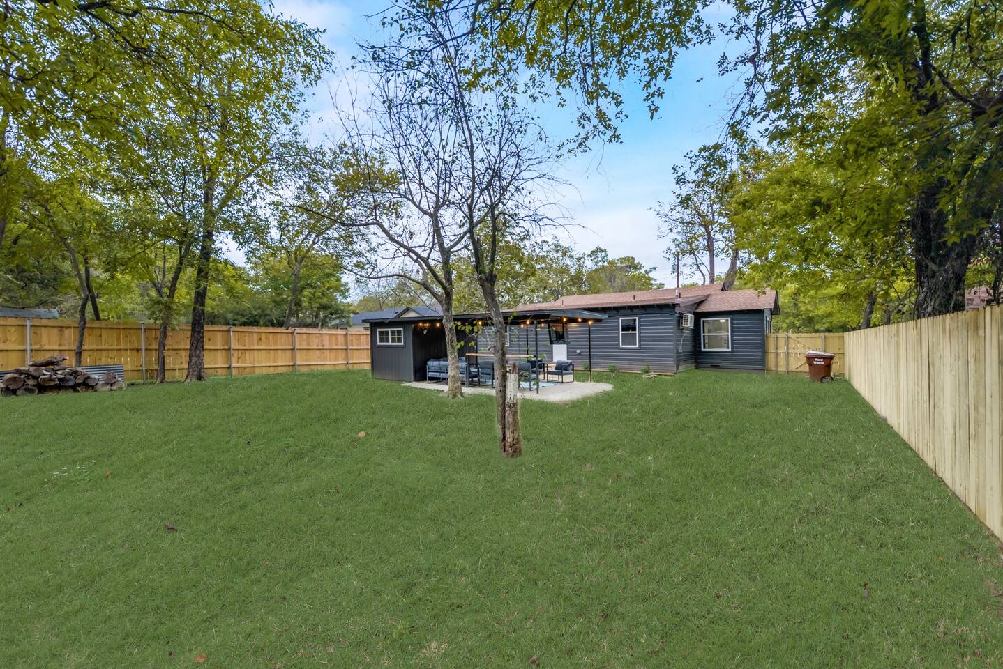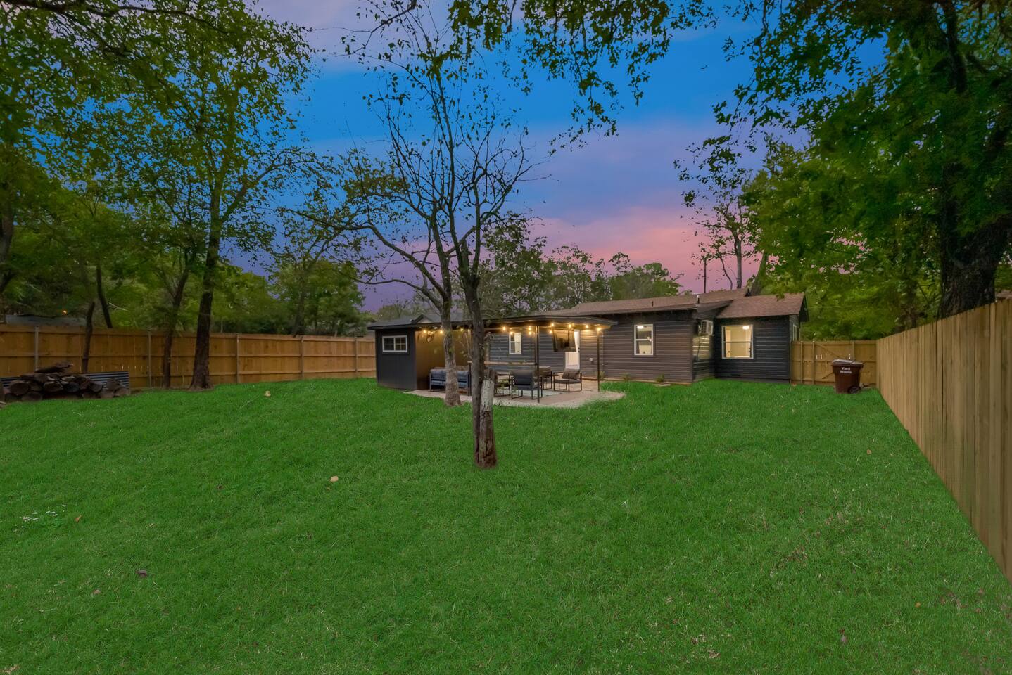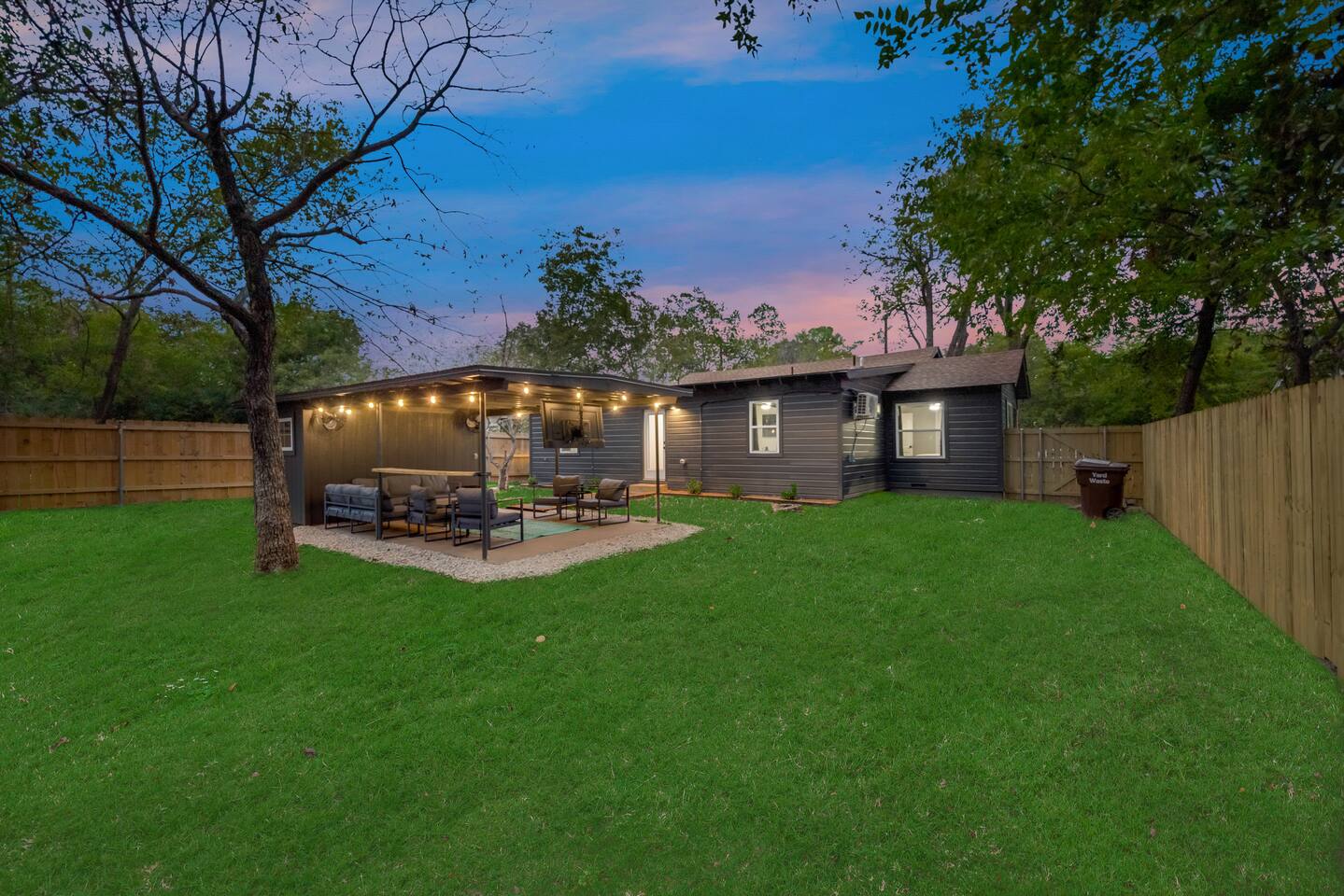 ★☆ Key Features ☆★ ☀ Sleeps 10+ comfortably: 5 bedrooms, all with king beds ☀ 3 full bathrooms stocked with essentials ☀ Fully equipped kitchen with modern appliances ☀ Smart TVs in every bedroom + fast Wi-Fi ☀ In-unit washer and dryer for convenience ☀ Pet-Friendly with a large fenced backyard ☀ Walking distance to UNT & a short drive to Denton Square ☆☆ BEDROOMS ☆☆ Each of the 5 bedrooms is furnished with a luxurious king-sized bed, fresh linens, and a smart TV. Ideal for large families, work groups, or friend getaways seeking both comfort and privacy. ☆☆ BATHROOMS ☆☆ Enjoy 3 full bathrooms, stocked with towels, toiletries, and shower essentials—making mornings smooth and easy for groups of any size. ☆☆ KITCHEN & LIVING ☆☆ Cook with ease in the modern kitchen—complete with full-size appliances, cookware, dishes, and a coffee maker. The open living space includes plush seating and another smart TV for relaxing nights in. ☆☆ OUTSIDE SPACE ☆☆ Step outside to a large fenced yard, perfect for pets or kids to play safely. Whether you're sipping coffee in the morning or enjoying the evening breeze, this backyard delivers privacy and comfort. ★☆ Book now and enjoy a relaxing stay in the heart of Denton! ☆★