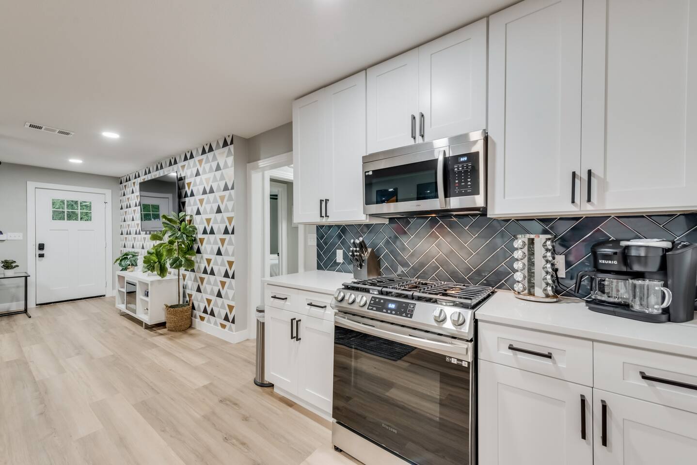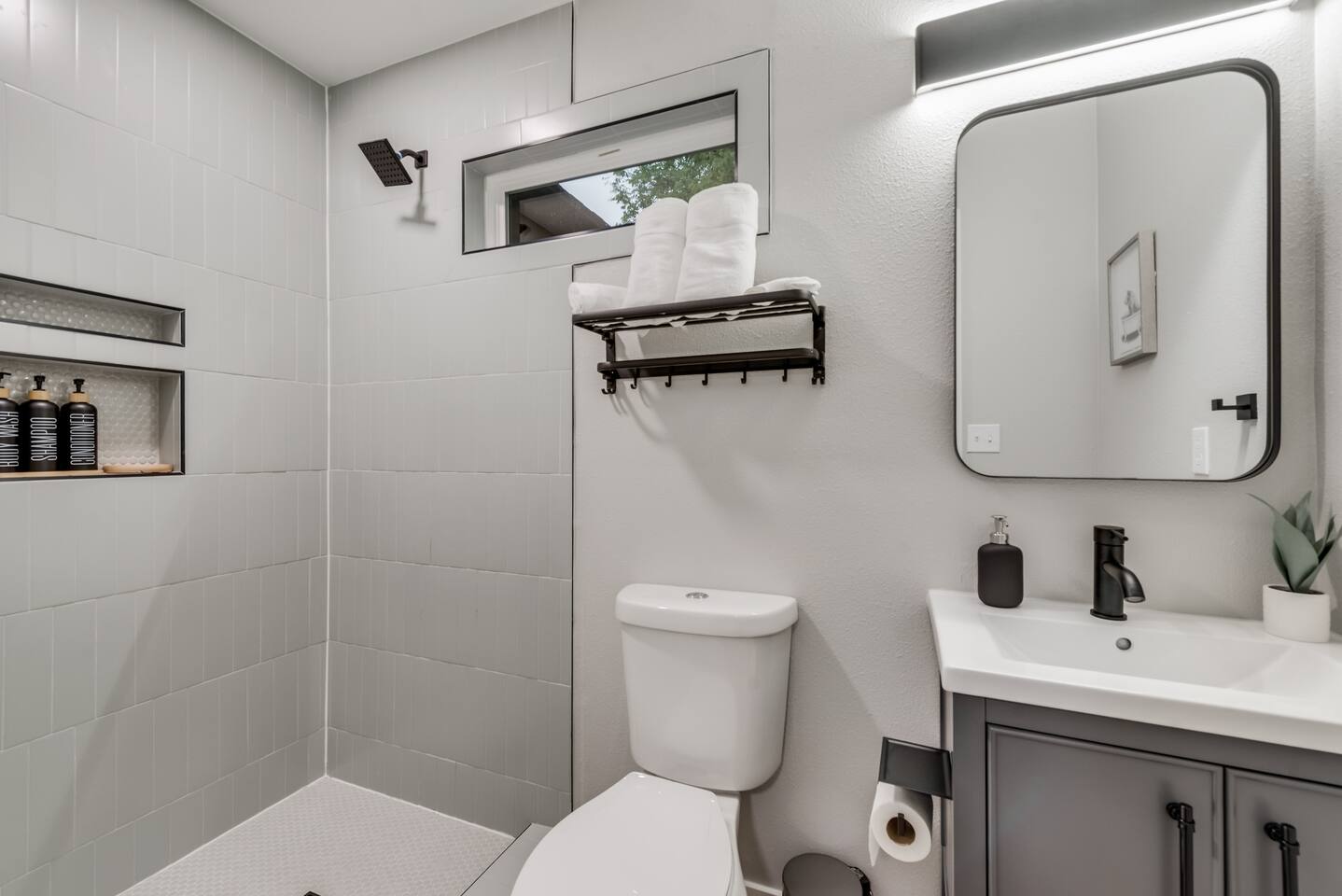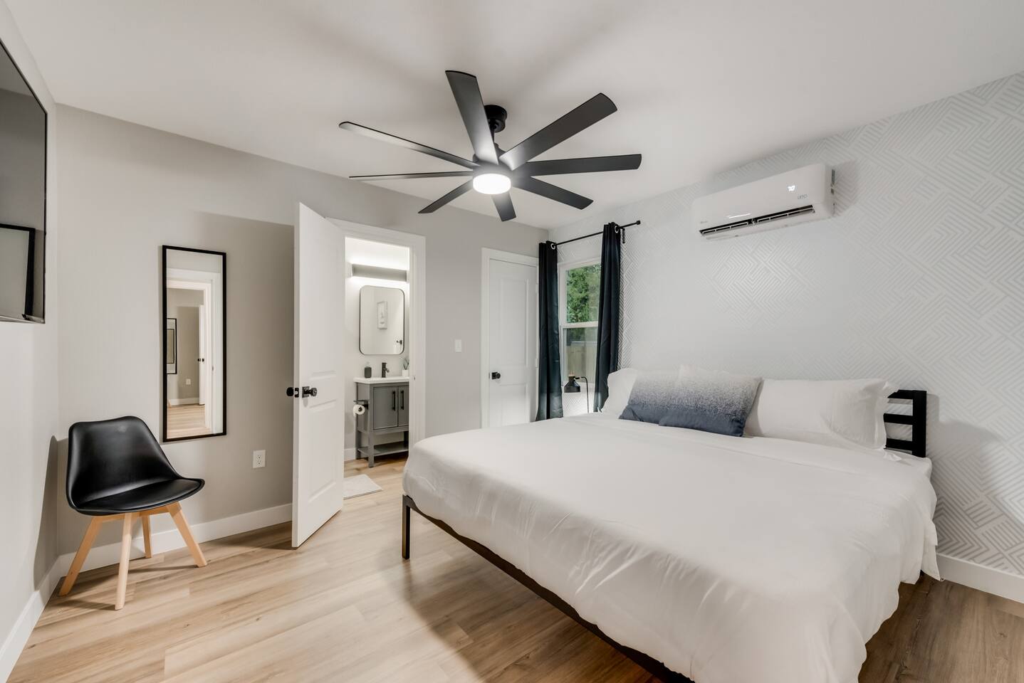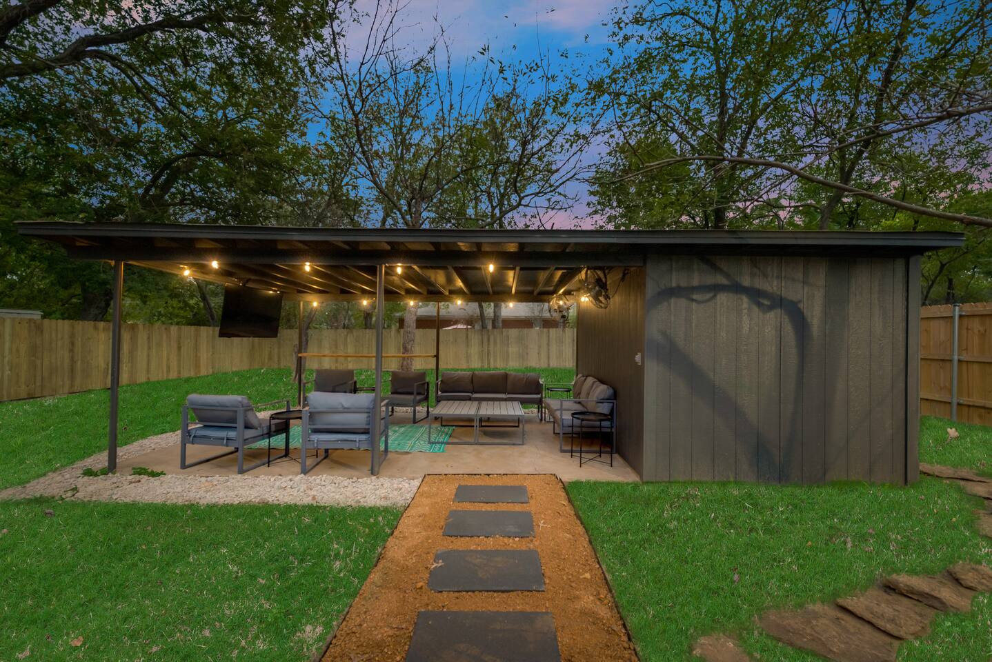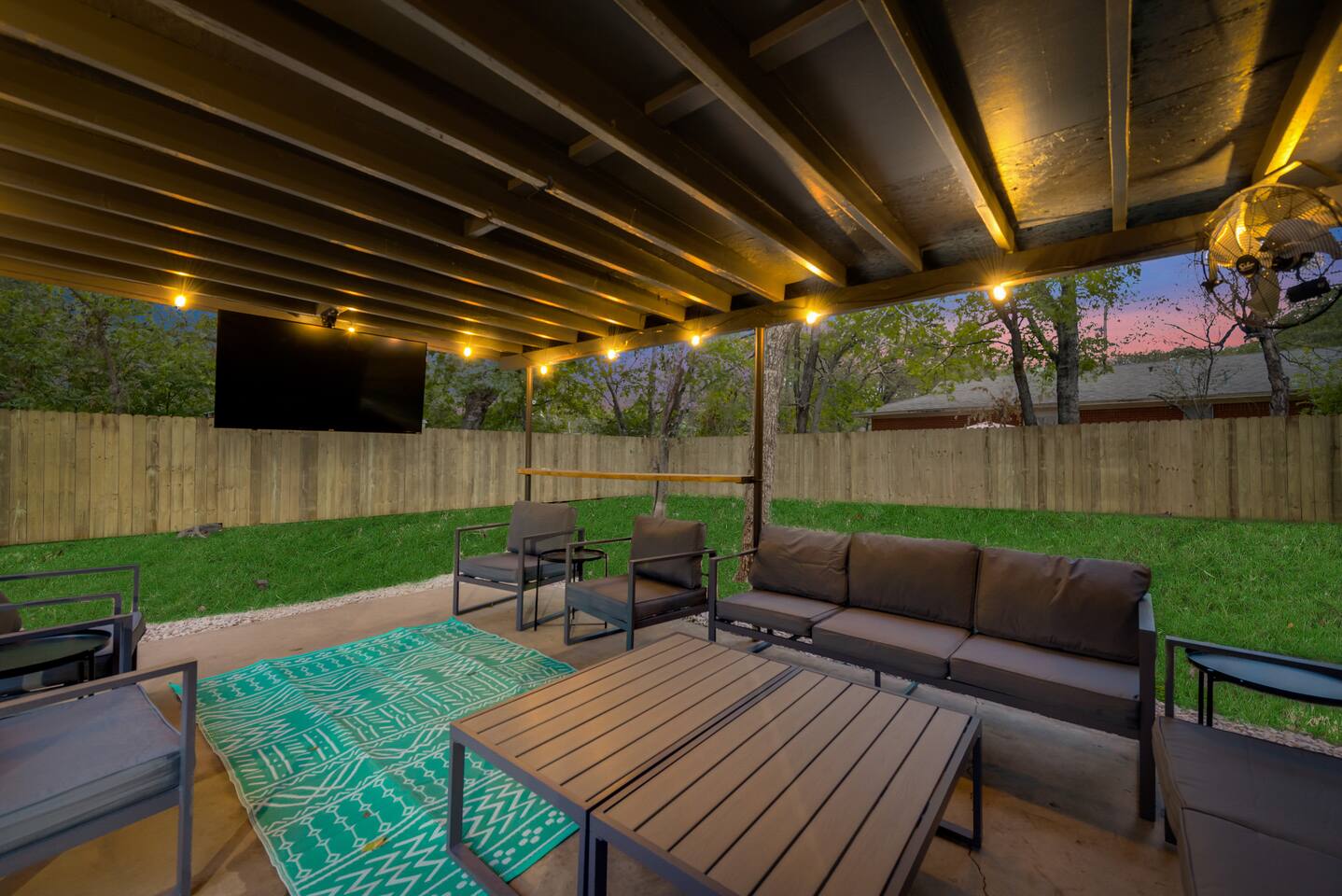★☆ Key Features ☆★ ☀ Sleeps 10+ comfortably: 5 bedrooms, all with king beds ☀ 3 full bathrooms stocked with essentials ☀ Fully equipped kitchen with modern appliances ☀ Smart TVs in every bedroom + fast Wi-Fi ☀ In-unit washer and dryer for convenience ☀ Pet-Friendly with a large fenced backyard ☀ Walking distance to UNT & a short drive to Denton Square ☆☆ BEDROOMS ☆☆ Each of the 5 bedrooms is furnished with a luxurious king-sized bed, fresh linens, and a smart TV. Ideal for large families, work groups, or friend getaways seeking both comfort and privacy. ☆☆ BATHROOMS ☆☆ Enjoy 3 full bathrooms, stocked with towels, toiletries, and shower essentials—making mornings smooth and easy for groups of any size. ☆☆ KITCHEN & LIVING ☆☆ Cook with ease in the modern kitchen—complete with full-size appliances, cookware, dishes, and a coffee maker. The open living space includes plush seating and another smart TV for relaxing nights in. ☆☆ OUTSIDE SPACE ☆☆ Step outside to a large fenced yard, perfect for pets or kids to play safely. Whether you're sipping coffee in the morning or enjoying the evening breeze, this backyard delivers privacy and comfort. ★☆ Book now and enjoy a relaxing stay in the heart of Denton! ☆★